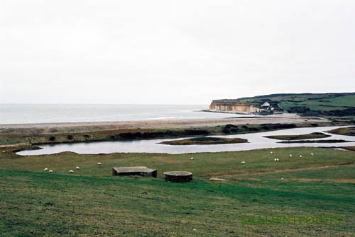 Pictures from Cuckmere Haven, Sussex. WW2 Defenses showing various Pillboxes and 'Dragons Teeth' anti-tank obstacles.